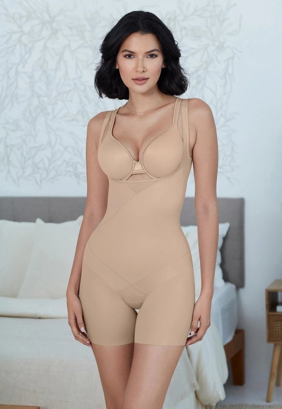 Miraclesuit Open Bust Mid-Thigh Bodysuit Warm Beige S