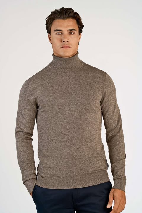 Ecovero L/S roll neck Sand Mel - XL