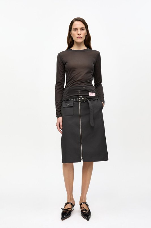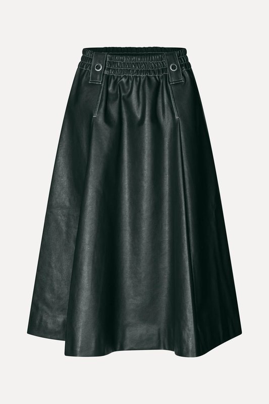 Heavy Weight Faux Leather, Gathered Waist Midi Skirt