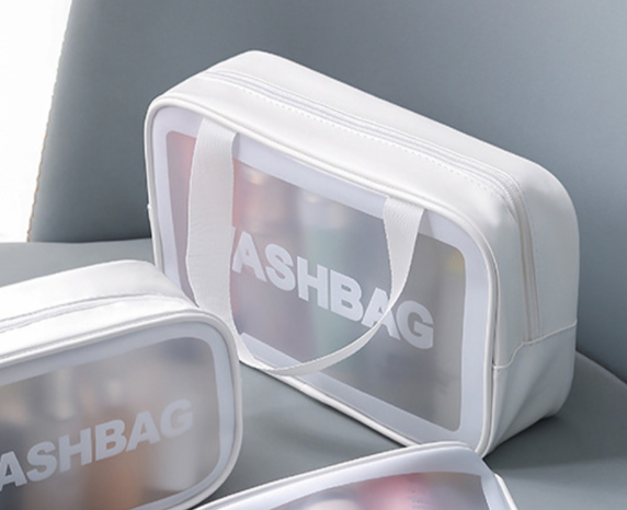 Vönduð hálfglær baðherbergistaska, PVC, PU