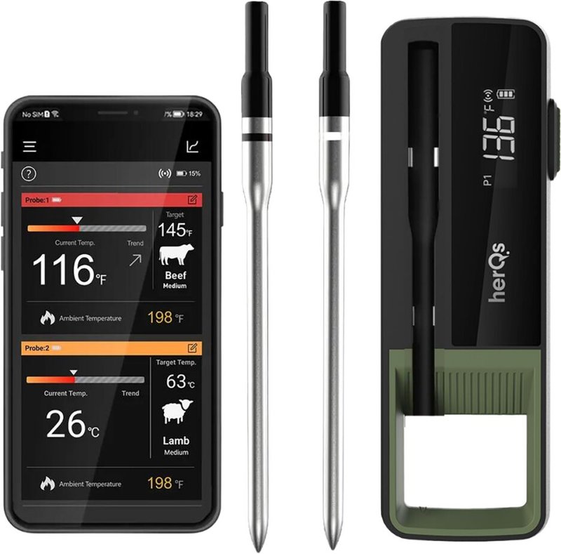 HerQs Double Max þráðlaus kjöthitamælir - 2 nemar