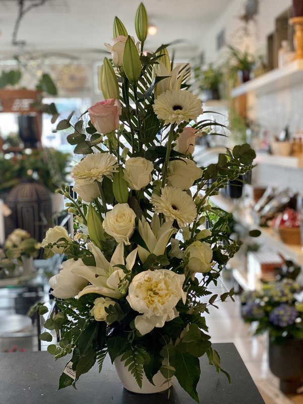 Blóma hengi úr Jute svart með kúlum l:95cm
