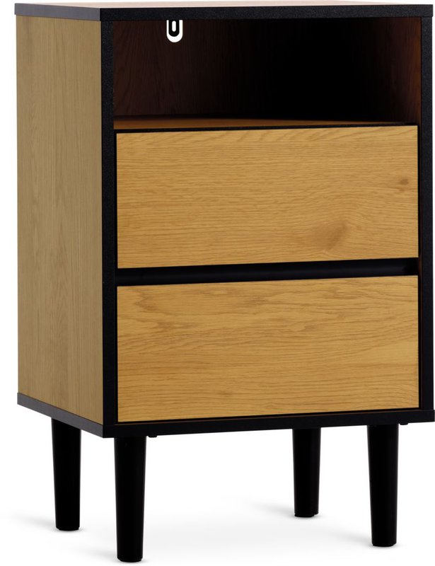 ODENSE náttborð með 2 skúffum eik/svart