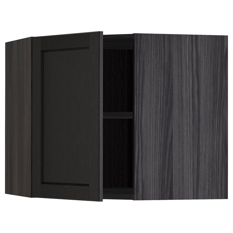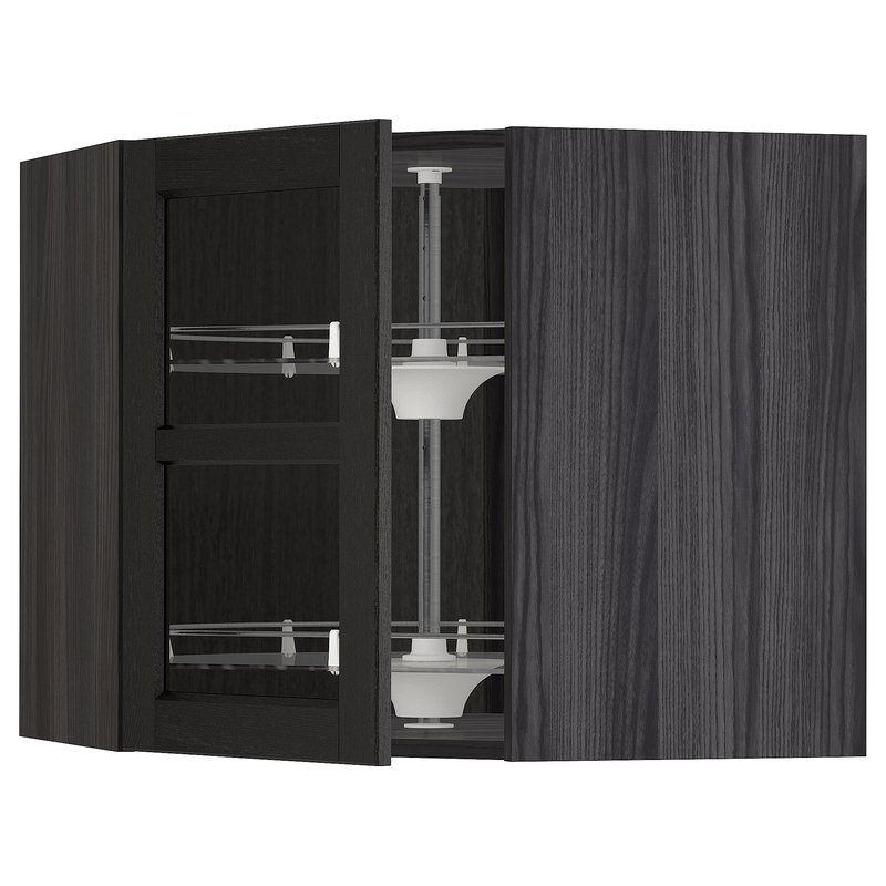 METOD Veggskápur Í Horn M/Snúanl Hi/Glhu, 68x60 cm, Svart/Lerhyttan Svartbæsað