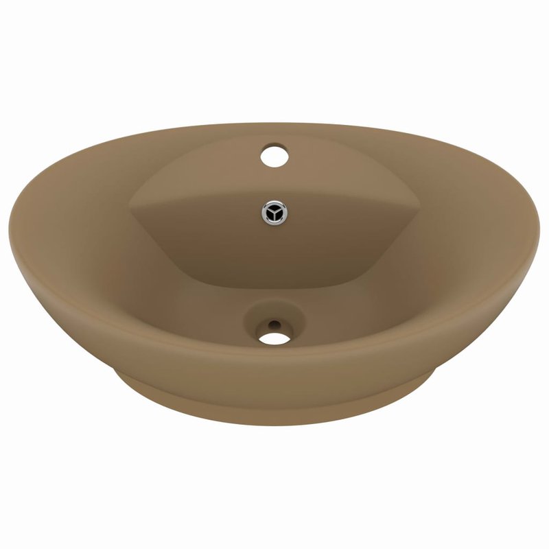 vidaXL Lúxus Handlaug með Yfirfalli Sporöskjulaga Mattur Kremlitur 58,5x39 cm Keramik