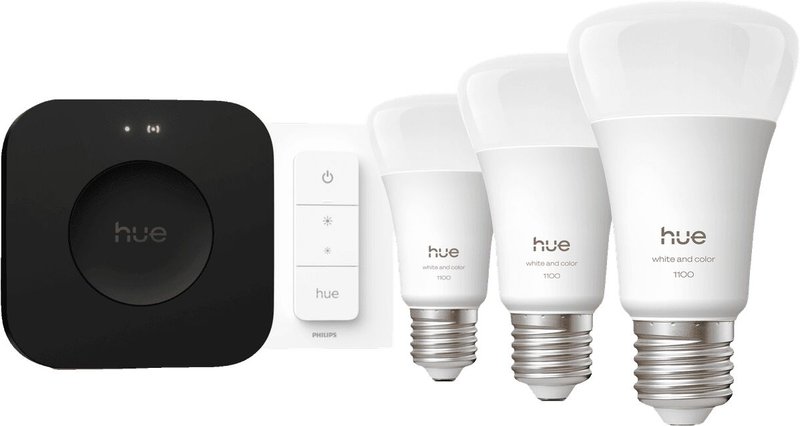 Philips Hue White 5W A60 E27 sett (3 perur + Hue tengistöð + Dimmir)