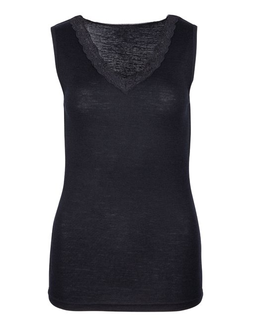 Ull/Tencel Hlýrabolur með blúndukanti svartur XL