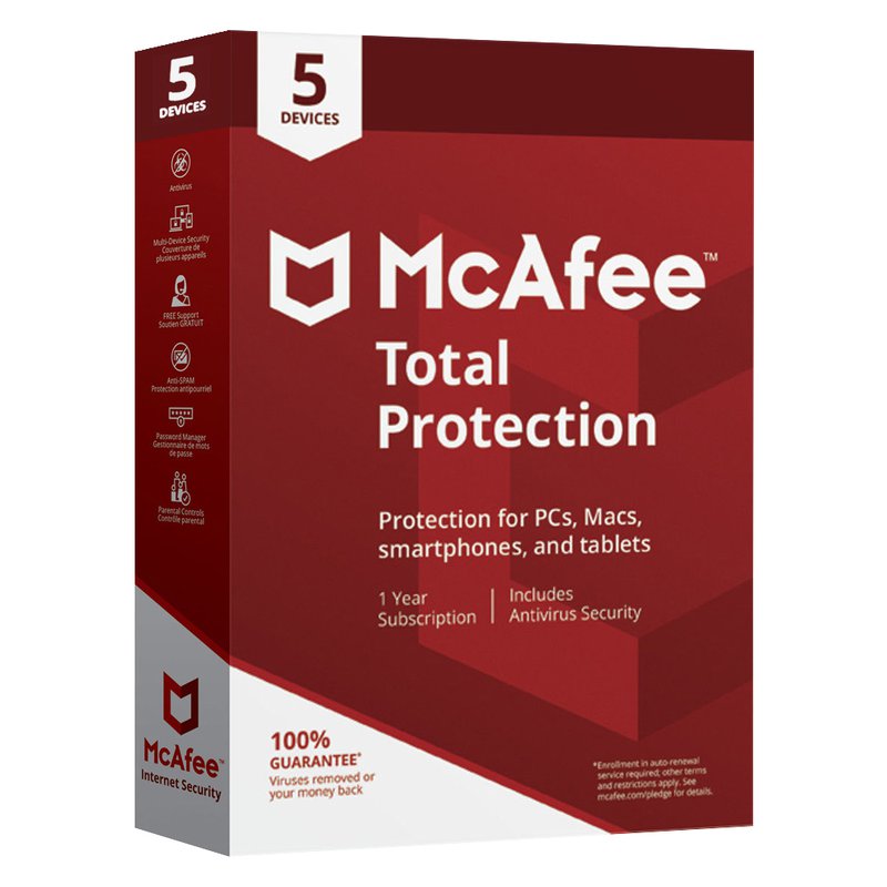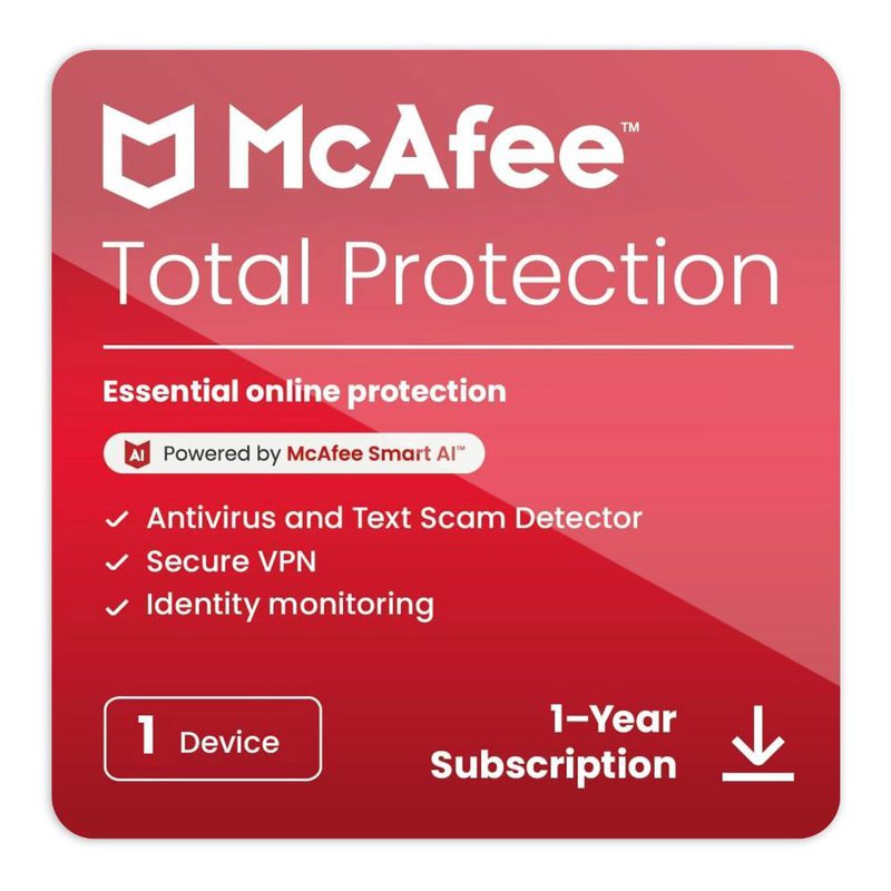 McAfee Total Protection og VPN þjónusta - Árs áskrift, allt að 5 tæki, digital