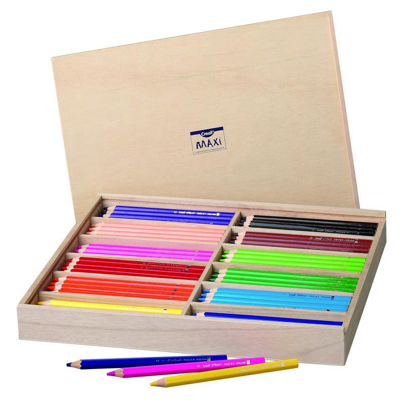 Trélitir mjóir 144 stk í trékassa skólasett